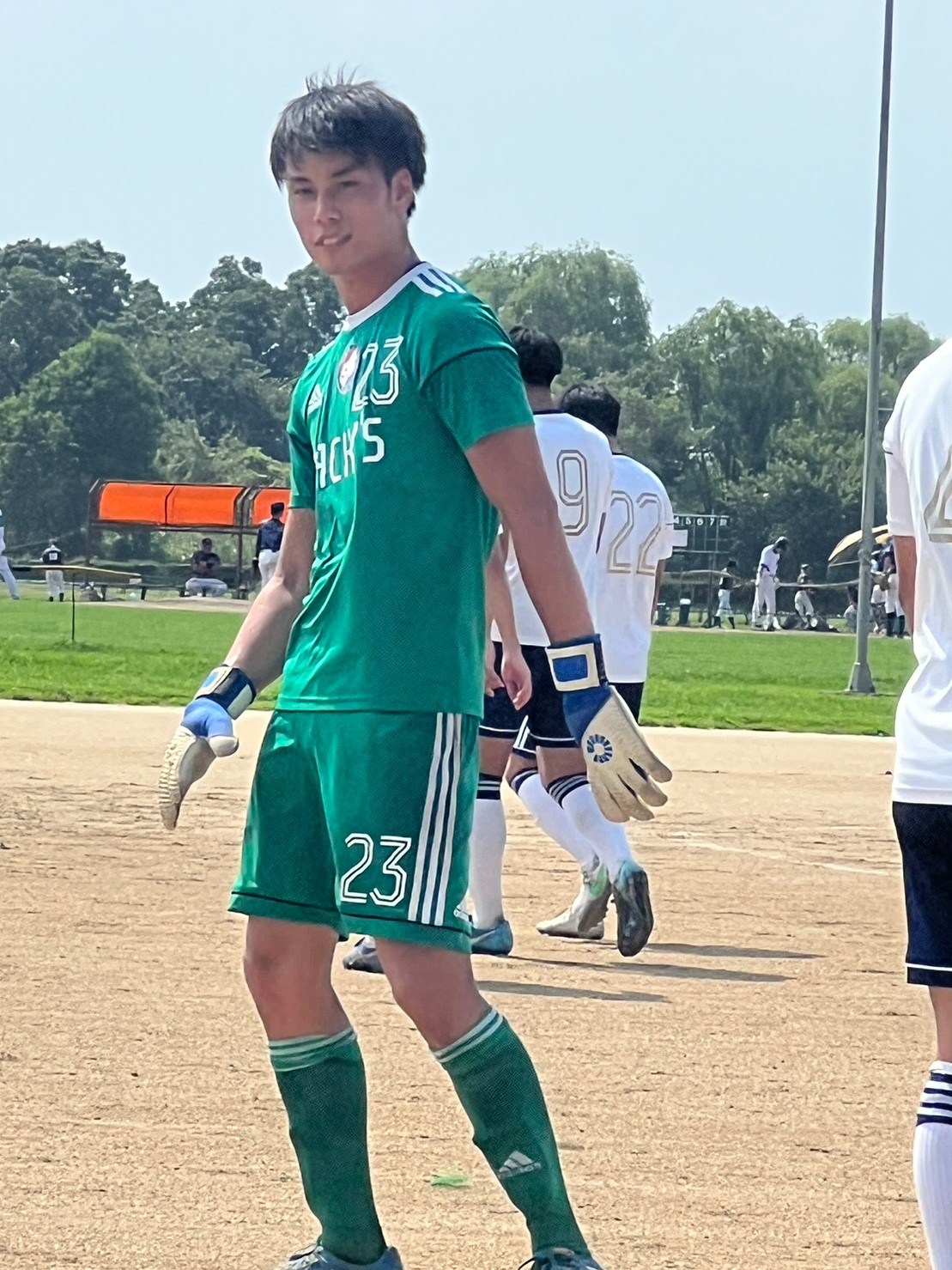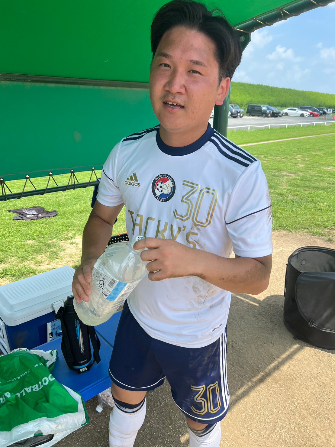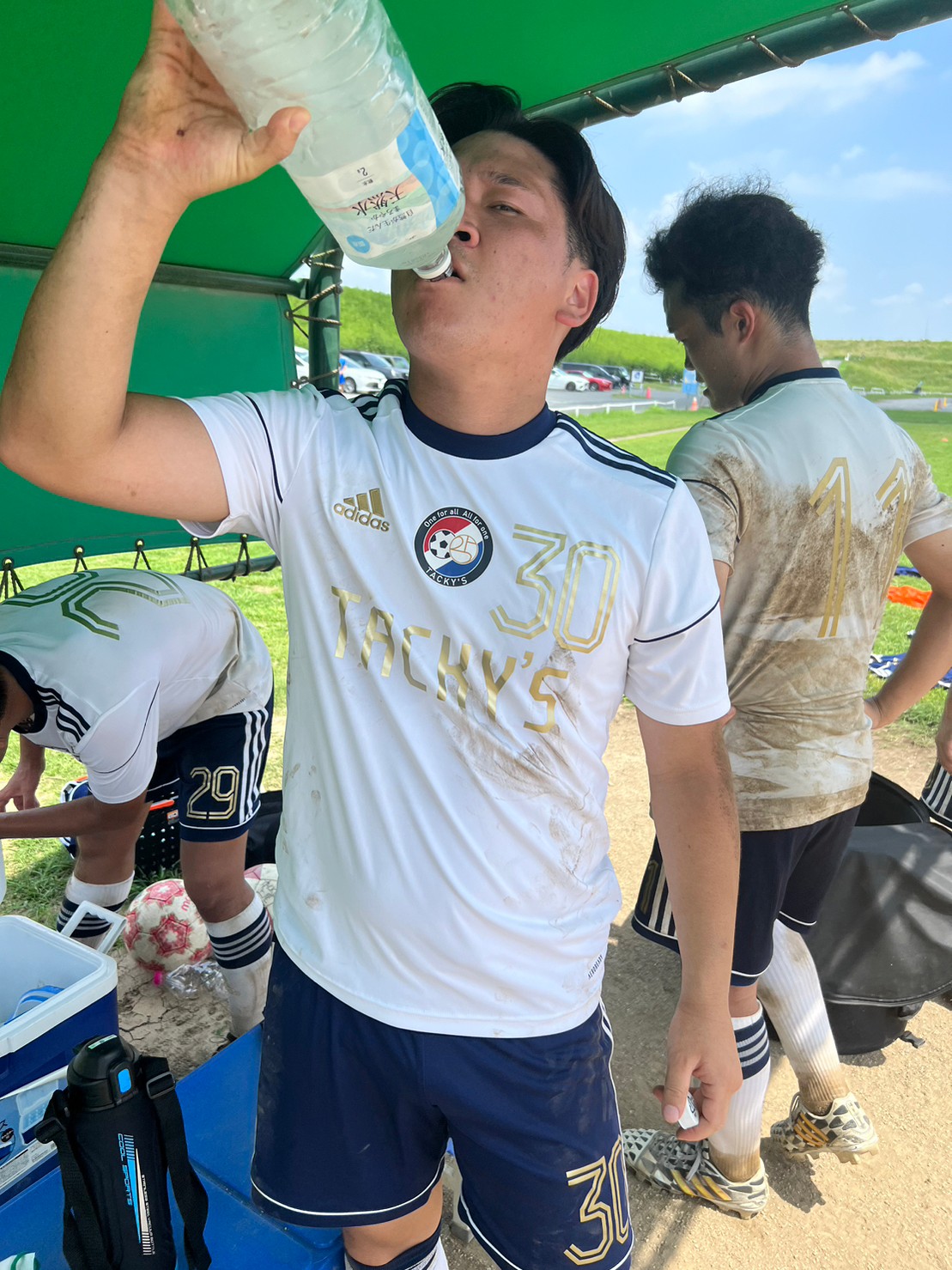 この日は人数も少なく、いつもより長めに出れたせいもあってか、左サイド幼馴染の吉田(22番)からピンポイントクロス、それを165センチの男が頭で合わせて、ようやく1点をもぎ取ります。